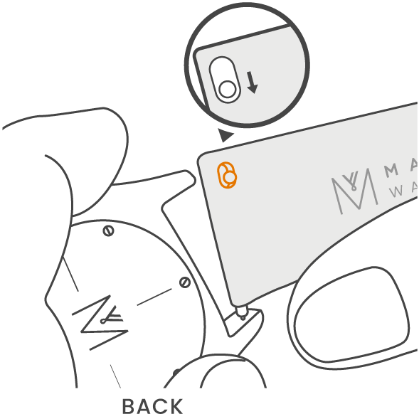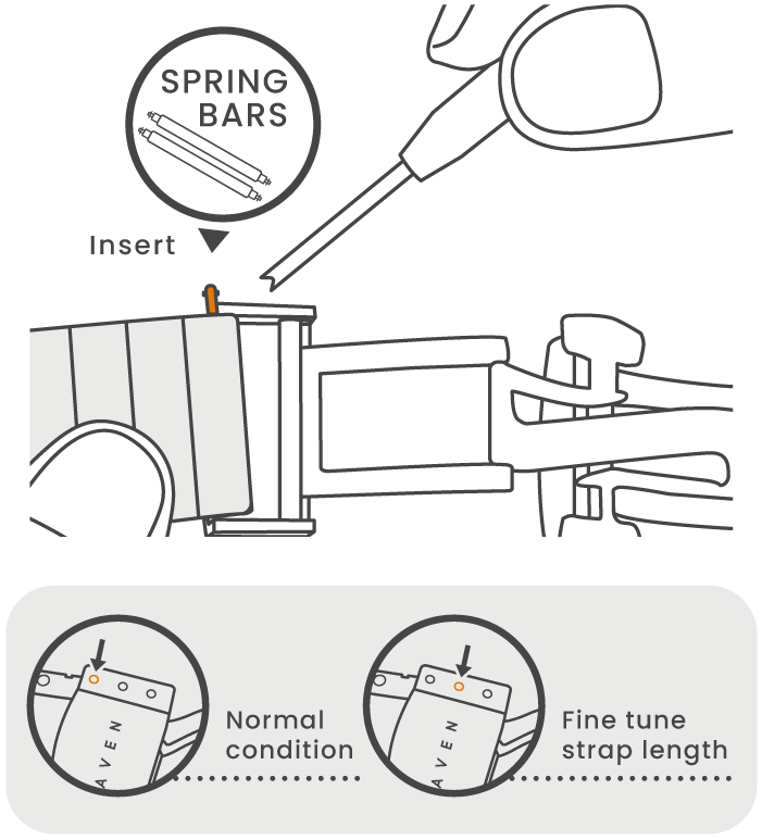 2. Place one end of the spring bar into the lug hole, then insert spring bars by pushing the pin inward. Make sure the spring bars snap into the lug holes.