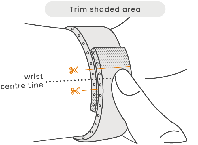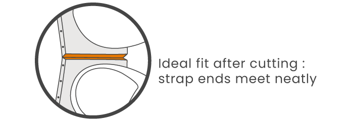 ⚠ Trim the strap at the groove. Once cut, it cannot be reversed.