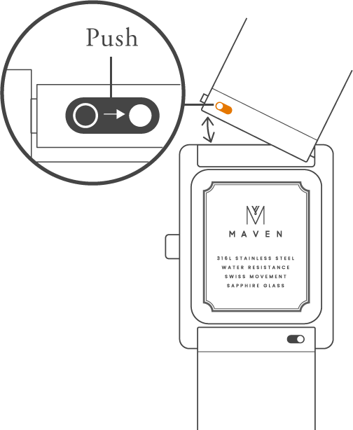 1. Insert the strap tool into the clasp gap.