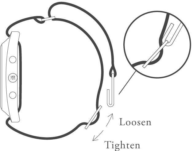 For smaller wrists, if the hook and clasp feel loose or insecure, adjust the case. To loosen, move the case away from the hook; to tighten, move it closer.
