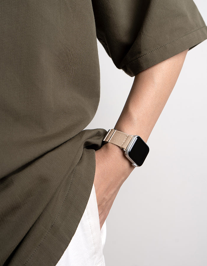 Introducing the Apple Watch Parachute Strap by MAVEN: Elevate your wristwear with the latest in tech-meets-style innovation. Crafted from high-quality elastic parachute strap material, this new accessory is designed for those who demand comfort, durability, and a touch of adventure in their everyday lives. The parachute strap is elastic, breathable and fully adjustable, perfect for everyday wear.