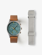 Sleekly packed with a leather watch and an extra quick-release parachute strap, this bundle makes style changes simple, fast, and tool-free.
