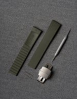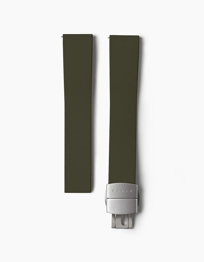 Crafted from premium FKM (Fluoroelastomer), the MAVEN CTS Strap is built for comfort, durability, and a custom fit. Resistant to heat, UV, oils, and sweat, it’s perfect for daily wear and outdoor use. The cut-to-size design ensures a tailored fit, while quick-release spring bars make switching effortless. Finished with a sand-blasted texture and stainless steel butterfly clasp, this rubber strap offers lasting performance and refined style.